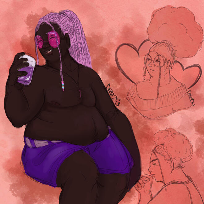 I love frogs, cows, and taco bell! My hobbies include world building, DnD, and general crafting between commissions. My favorite colors are green and pink!