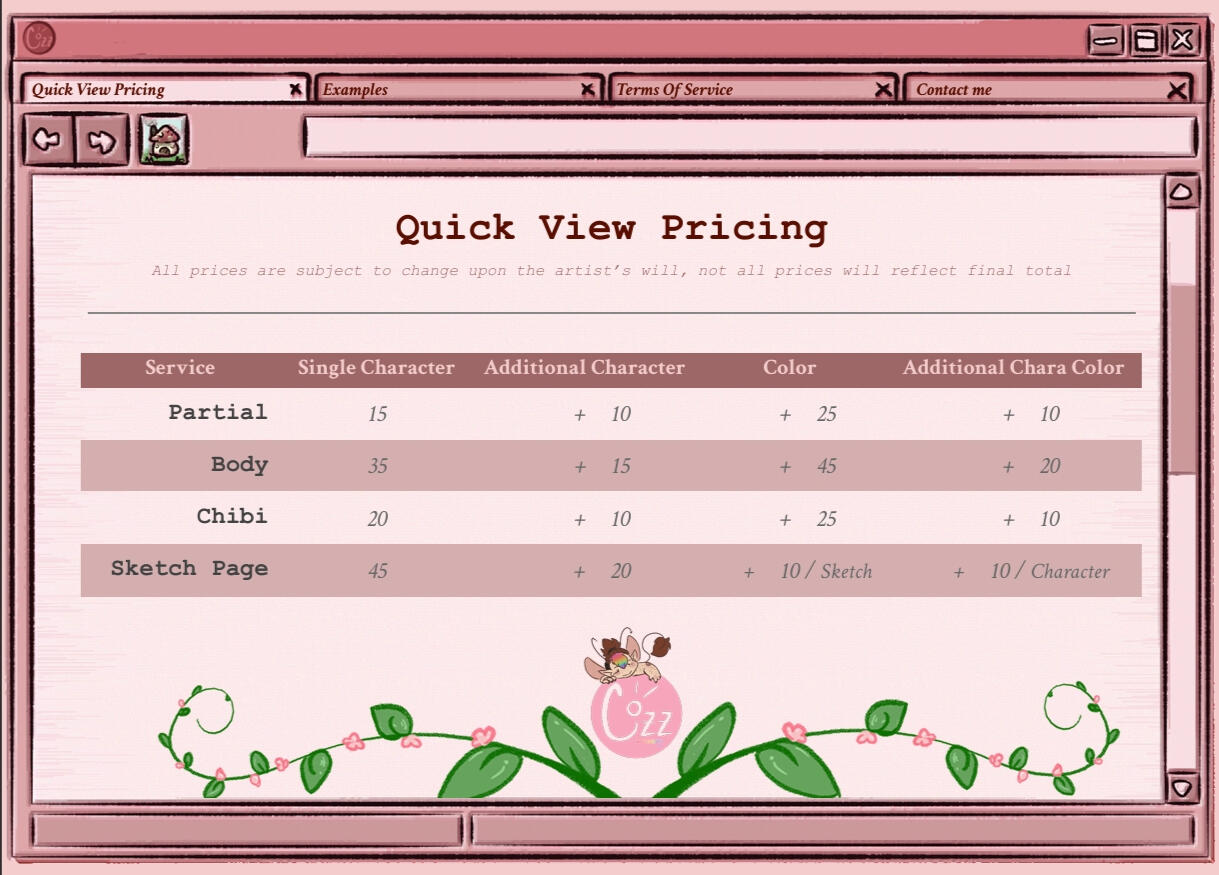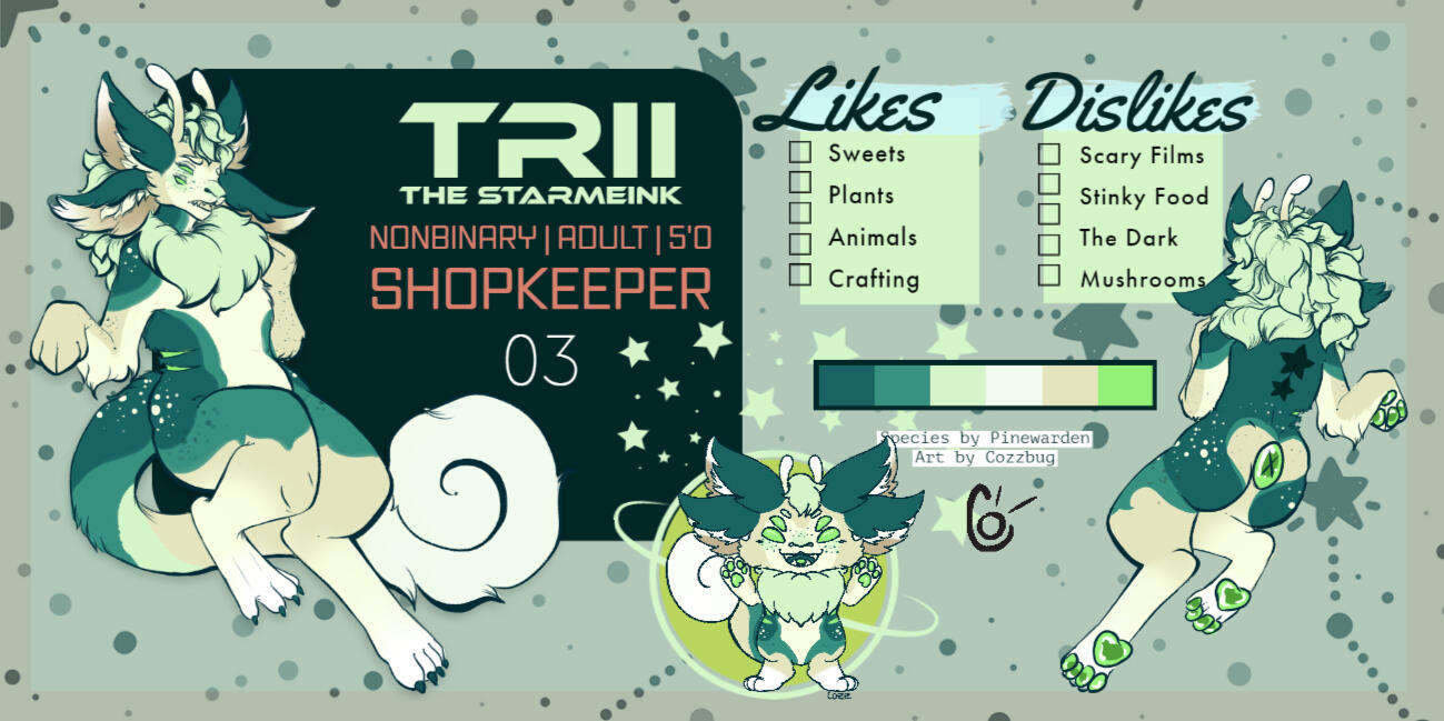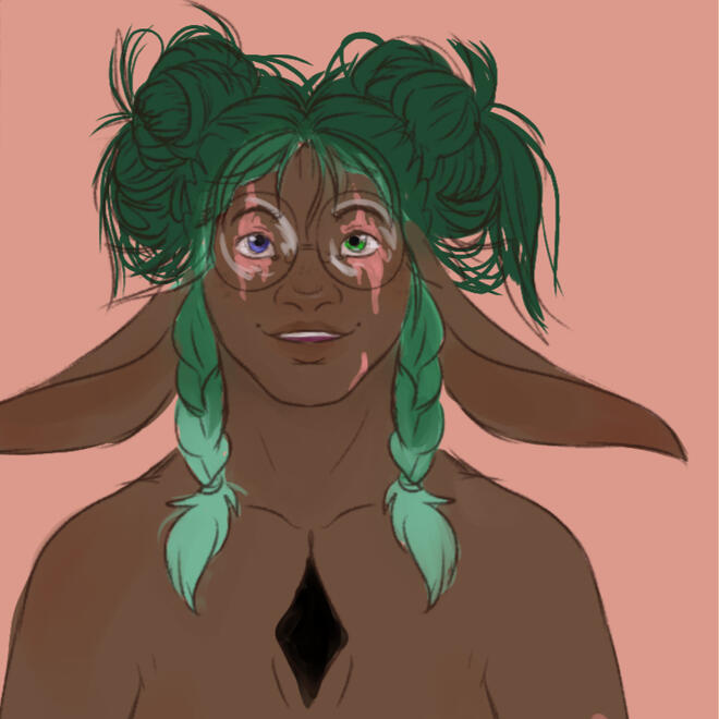 I love frogs, cows, and taco bell! My hobbies include world building, DnD, and general crafting between commissions. My favorite colors are green and pink!